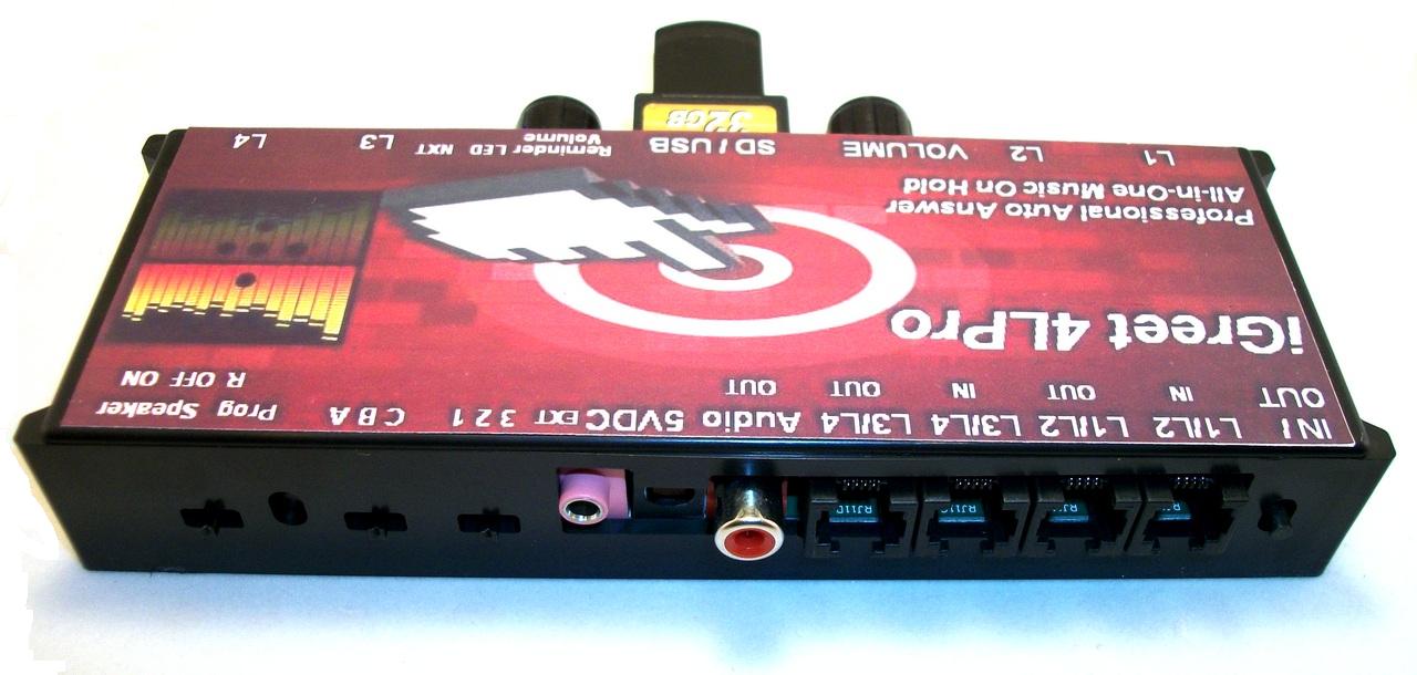 The new Auto Answer iGreet 4LPro is more than just a music /message on Hold device. When phone rings – relax – now the “Auto Answer” function can take the call and give the caller a Greeting 1st then take the caller to a professional “thank you for holding ….loop” until you can handle the call.